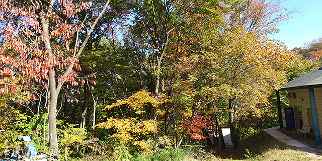 社内の木々も赤や橙に染まり、秋の深まりを感じさせてくれます。