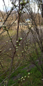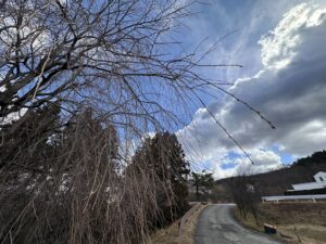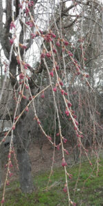 やわらかな春の気配の中、ハナモモとしだれ桜のつぼみが静かに膨らみ始めています。